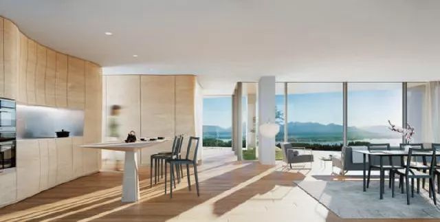 木质手工打造阳台是建筑规划设计一大亮点,宽敞的开放露台成为私人空间与城市空间之间的过渡。