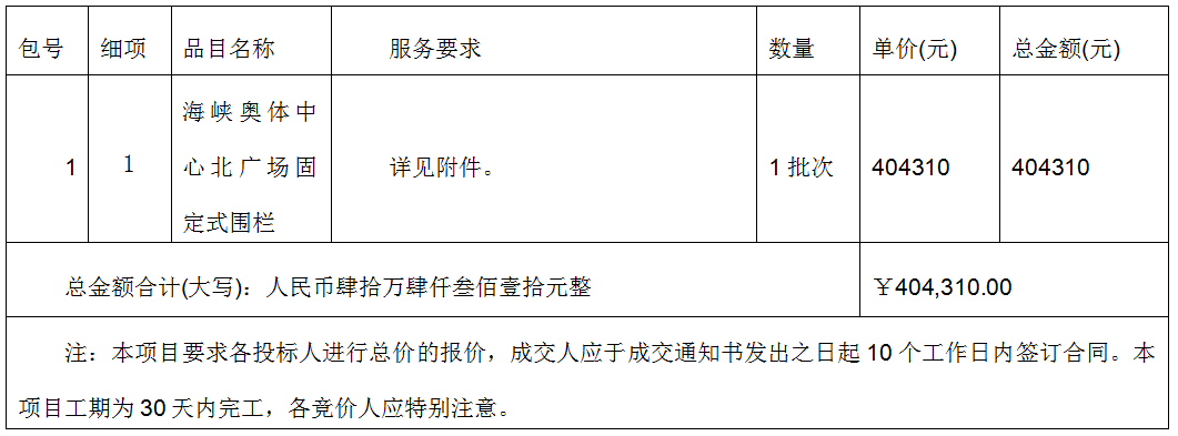 海峡奥体中心北广场固定式围栏项目网上竞价公告
