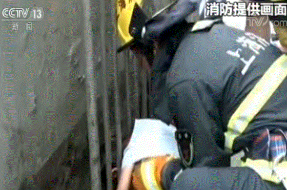而广东省中山市一居民小区,前几天(19日)也发生了惊险一幕。一名3岁左右的男孩被卡在四楼家中的防盗网内,半边身子悬空,四肢还挂在防盗网上,周围一名小女子正用力拉住男孩的手,非常风险。接到求助电话后,当地消防救援人员当即赶赴现场。